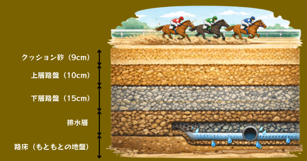 ダートコースは、ただ砂を敷いただけの単純な構造ではありません。